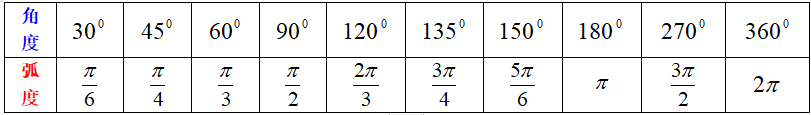 4.特殊角的角度数与弧度数的对应表