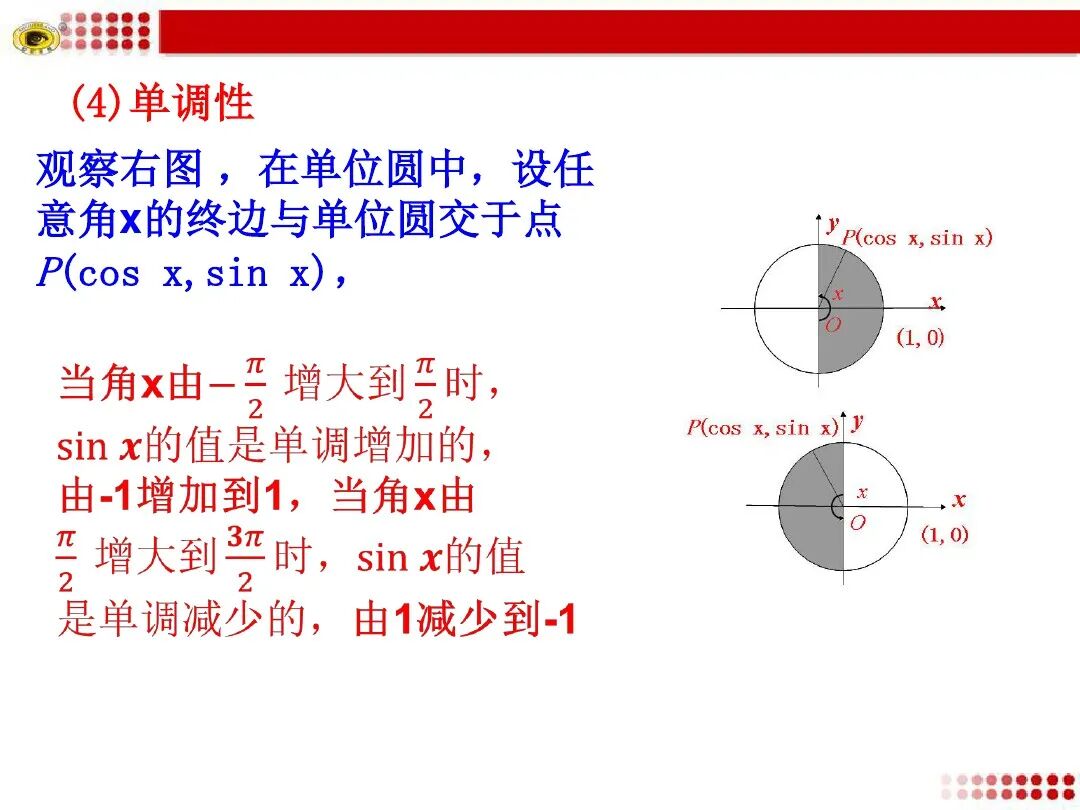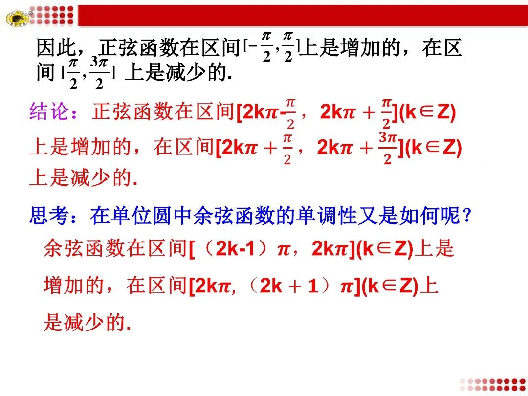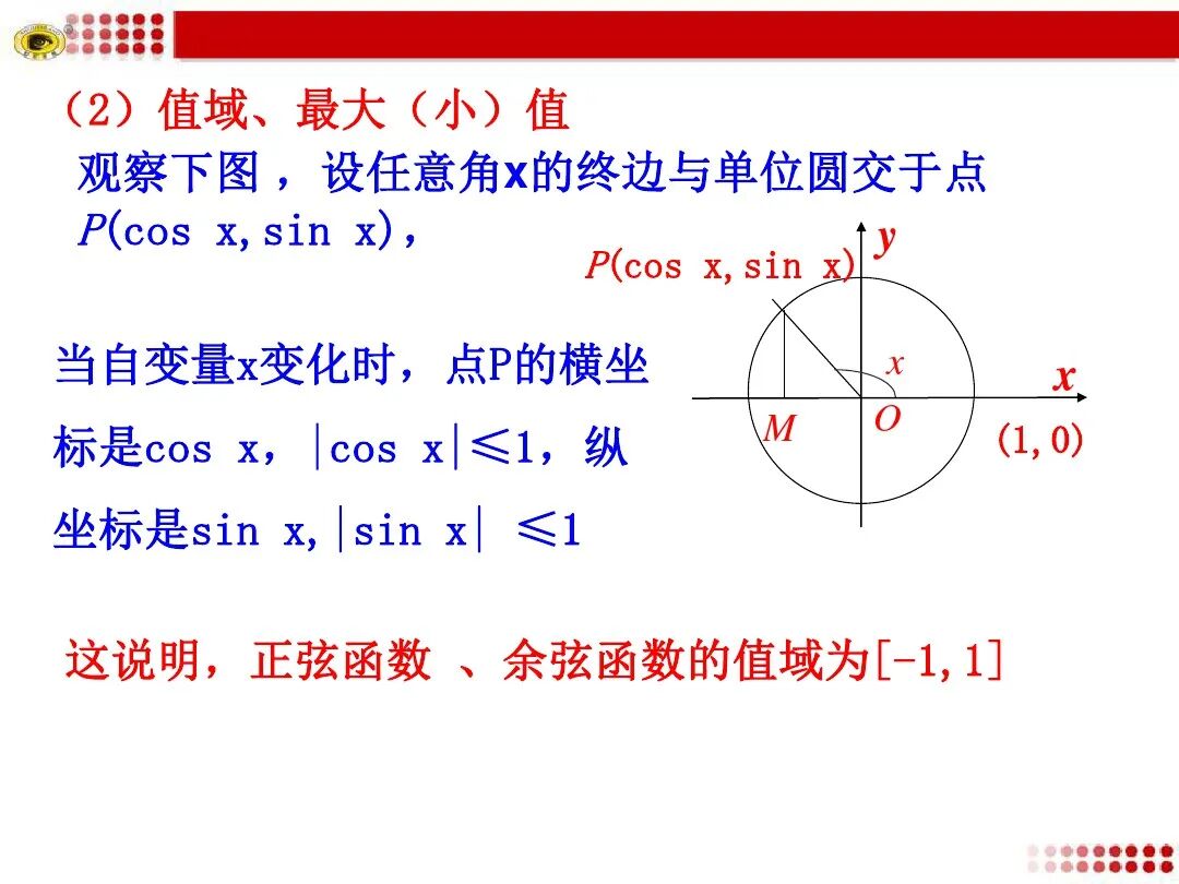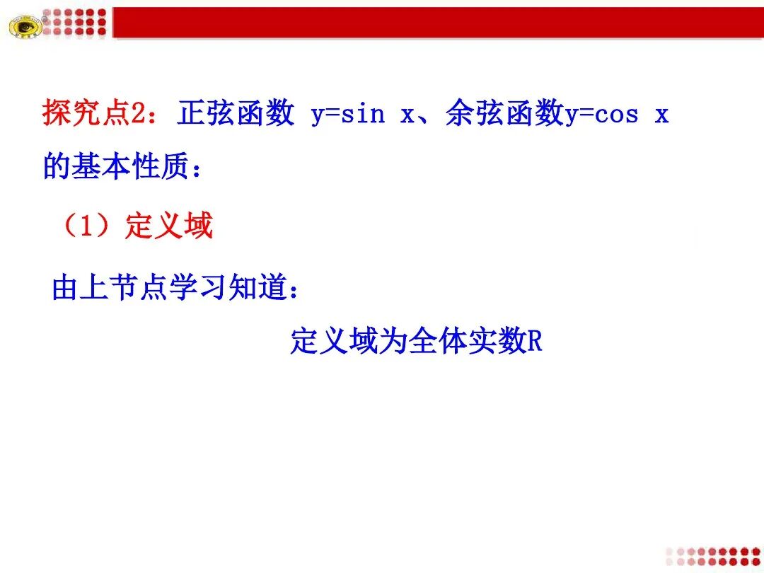 本节课是正弦函数、余弦函数图像的继续,本课是正弦曲线、余弦曲线这两种曲线的特点得出正弦函数、余弦函数的性质.
