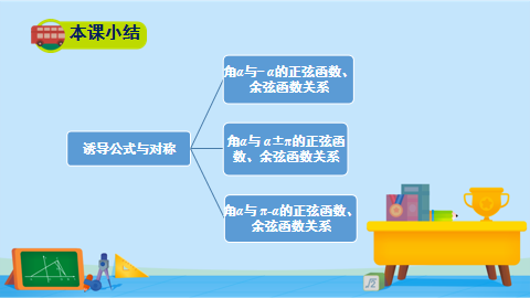 诱导公式沟通了任意角三角函数值与锐角三角函数值以及终边有特殊位置关系的角的三角函数值之间的联系.在求任意角的三角函数值,解决有关的三角变换等方面有重要的作用,特别是诱导公式中的角可以是任意角,即,它在终边具有某种对称性的角的三角函数变换中,应用广泛,如后续课中,画余弦曲线就是利用诱导公式把正弦曲线向左平移个长度单位而得到的.