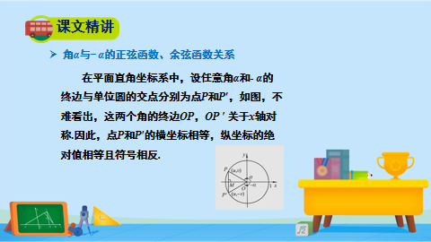 除此之外还有一些角,它们的终边具有某种特殊关系,如关于坐标轴对称、关于原点对称等。那么它们的三角函数值有何关系呢?