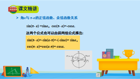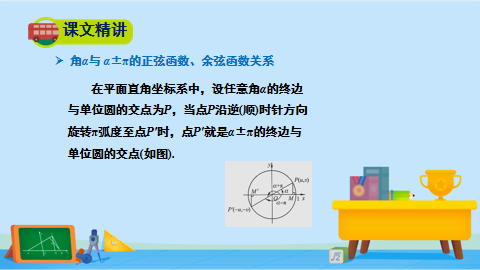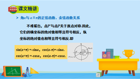 sin(π+α)=-sin α,cos(π+α)=-cos α.(1.12)