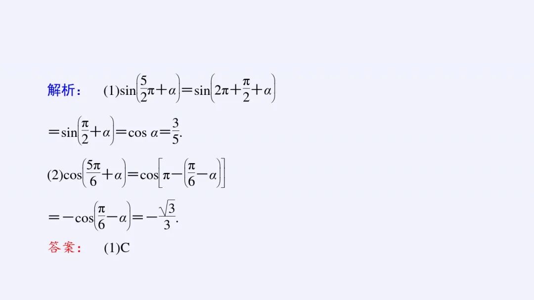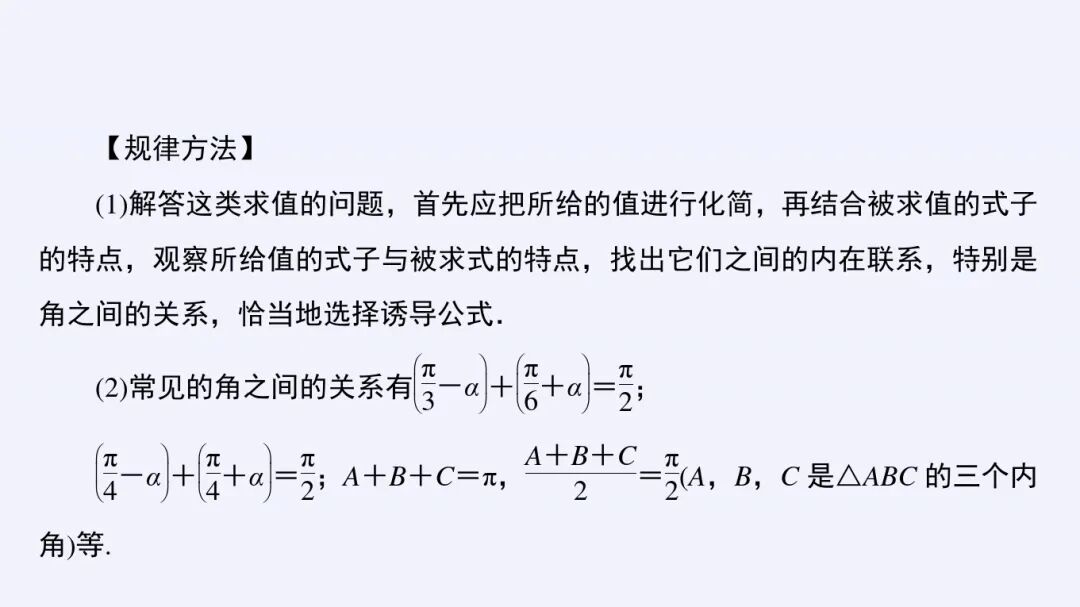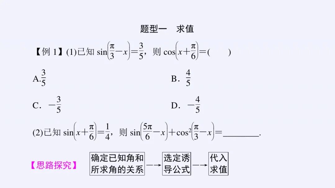 (1)解答这类求值的问题,首先应把所给的值进行化简,再结合被求值的式子的特点,观察所给值的式子与被求式的特点,找出它们之间的内在联系,特别是角之间的关系,恰当地选择诱导公式.