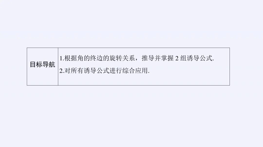 1.根据角的终边的旋转关系,推导并掌握对应的诱导公式.