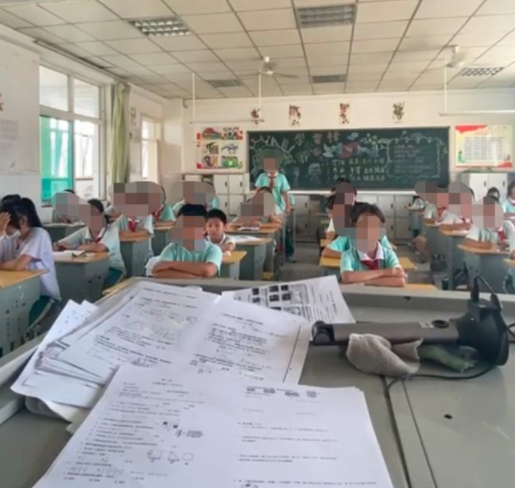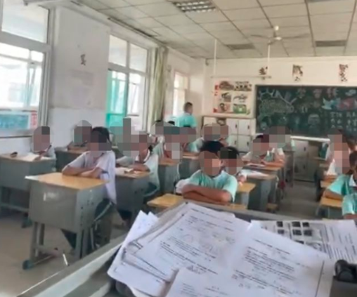 其他的学生在听到二人的话时,都噤若寒蝉,坐的笔直,双手重叠平整地放在课桌上。可以看出学生们在这种气氛下都非常的紧张和严肃。