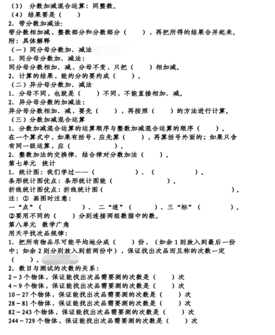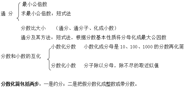 10、通分:把异分母分数分别化成和原来相等的同分母分数,叫做通分。