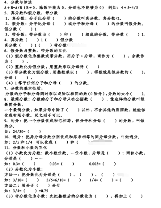 9、约分:把一个分数化成和它相等,但分子和分母都比较小的分数,叫做约分。