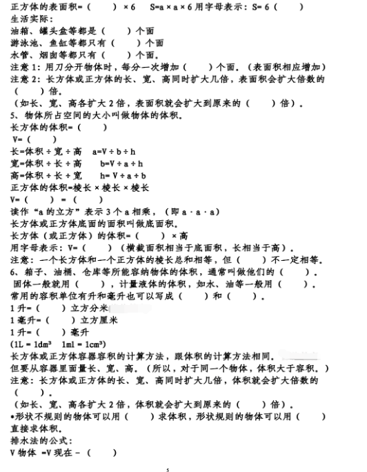 不规则图形面积(?切割成长方形或正方形求面积;?补成一个大的长方形或正方形求面积)。