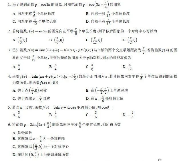 其图像可由y=Asin3x的图像向左平移π12个单位得到,