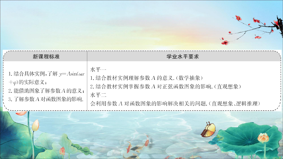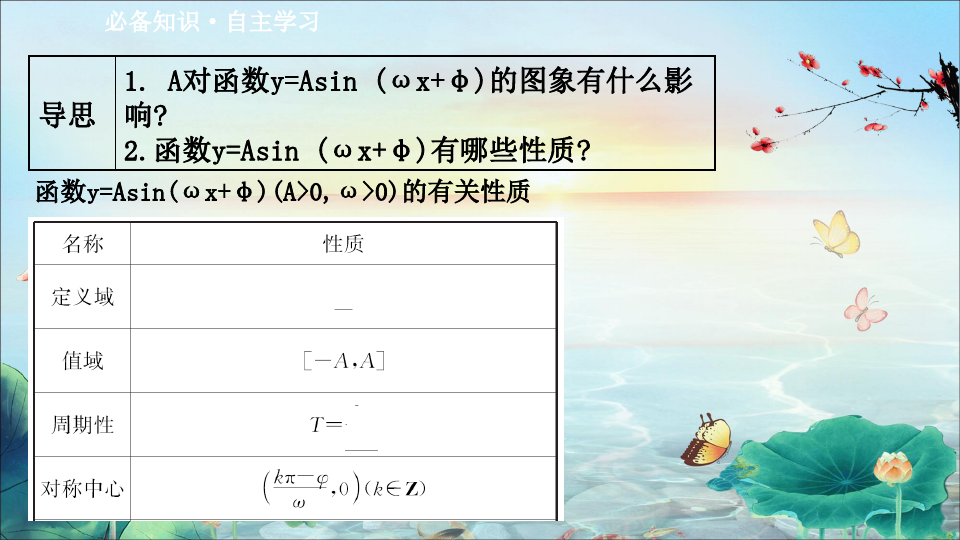 1.知道A对y=Asin(ωx+φ)的图象的影响.