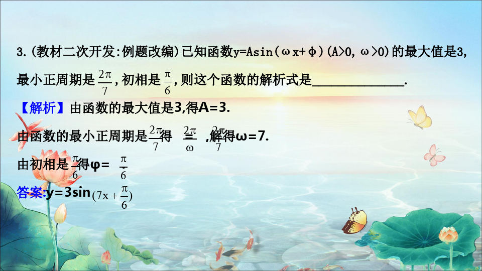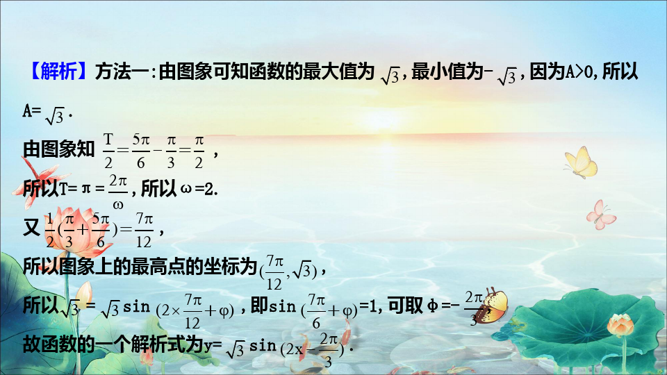 【例3】如图所示的是函数y=Asin(ωx+φ)(A>0,ω>0,|φ|<π)的图像,由图中条件,写出该函数的解析式.