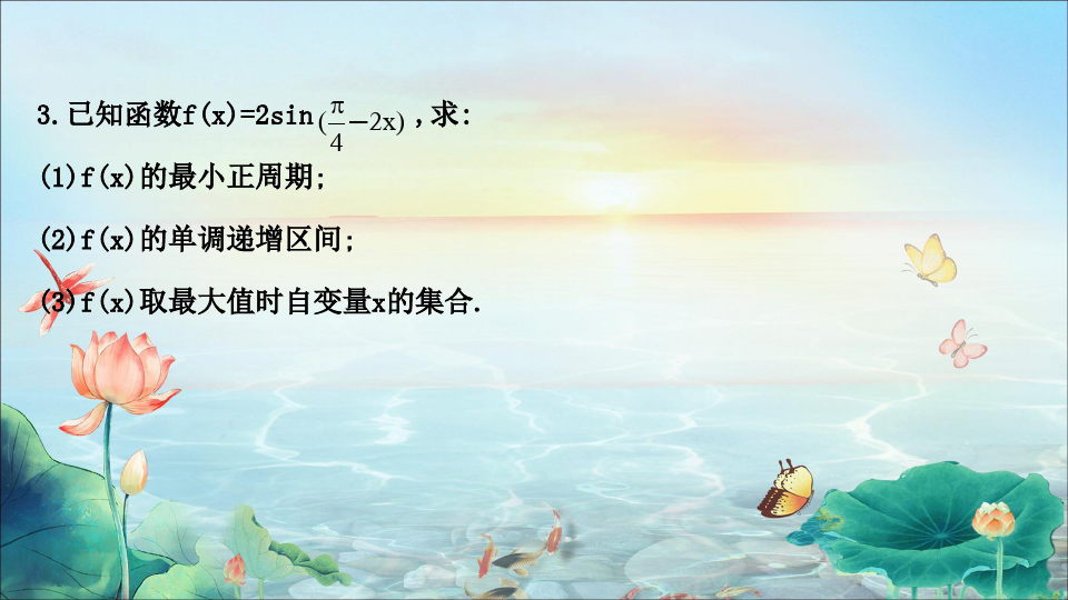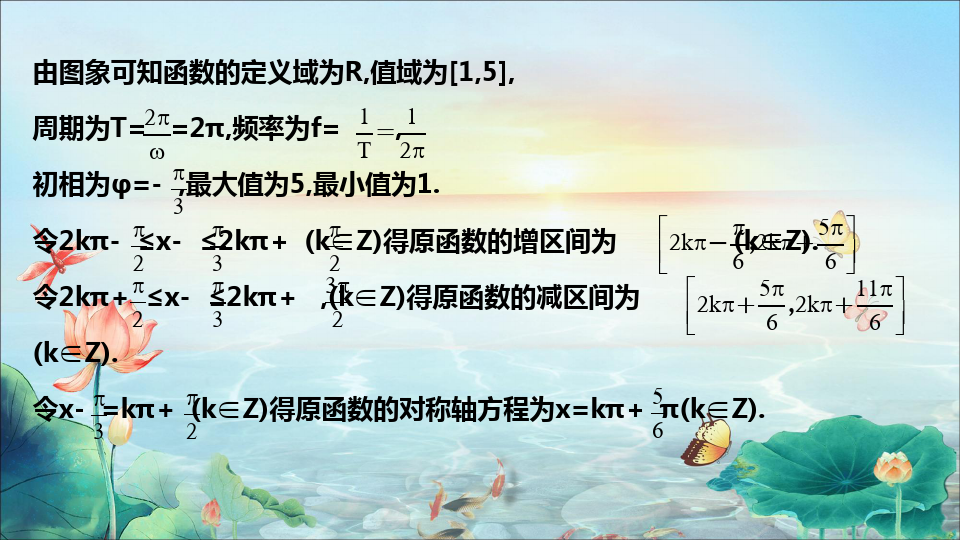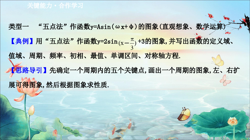 【例1】用五点法作函数y=3sinas4alco1((1π4)的简图,并指出这个函数的振幅、周期、频率和初相.