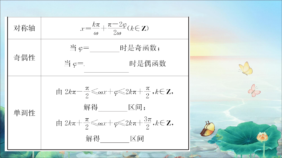φ | φ决定了x=0时的函数值,通常称φ为初相,ωx+φ为相位. |