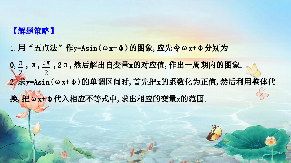1.函数y=Asin(ωx+φ)(A>0,ω>0)中参数A.φ、ω的作用