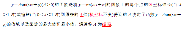 要得到函数y=Asinx(A>0,A≠1)的图像,只要将函数y=sinx的图像上所有点的纵坐标伸长(当A>1时)或缩短(当0<A<1时)到原来的A倍(横坐标不变)即可得到.