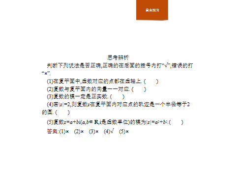 实轴上的点都表示实数.除了原点外,虚轴上的点都表示纯虚数.
