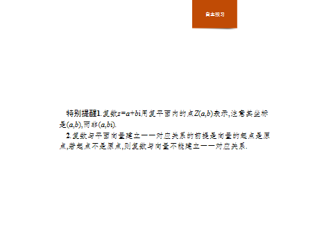 复数z=a+bi与复平面内的点(a,b)以及平面向量,其中a,b∈R,是一一对应关系(复数的实质是有序实数对,有序实数对既可以表示一个点,也可以表示一个平面向量)