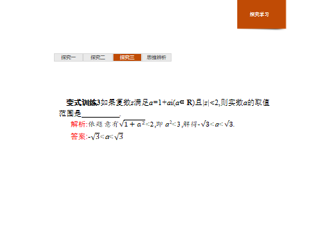 [巩固练习] (1)、已知复数 (2)、若复数Z=3a-4ai(a<0),则其模长为< span=""> 。 拓展与延伸: (3)满足|z|=5(z∈R)的z值有几个?满足|z|=5(z∈C)的z值有几个?这些复数对应的点在复平面内构成怎样的图形?其轨迹方程是什么? (4)设Z∈C,满足2<< span="">
