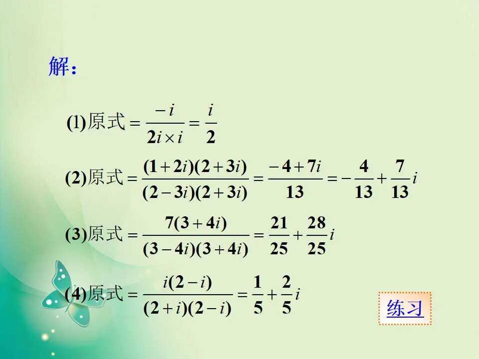 (3)然后将分子、分母分别进行乘法运算,并将其化为复数的代数形式.
