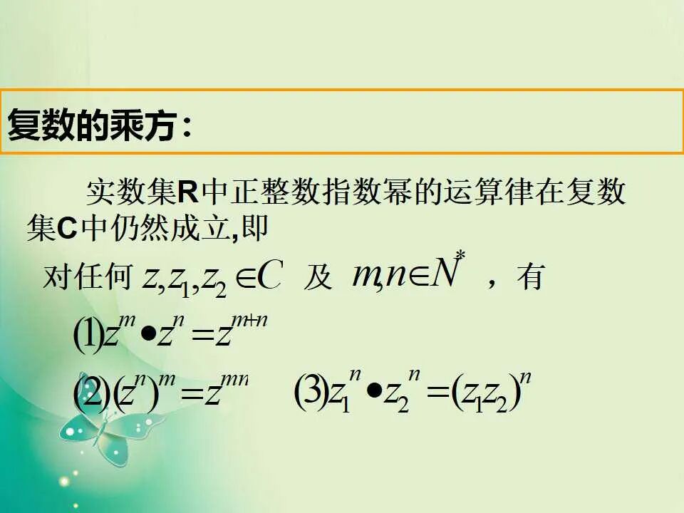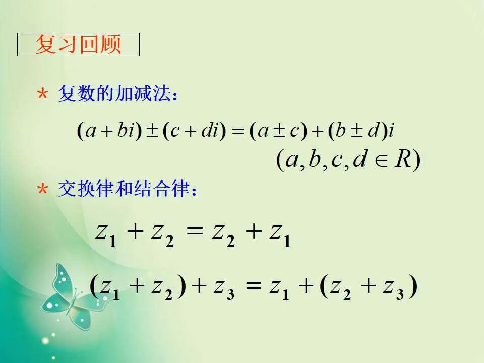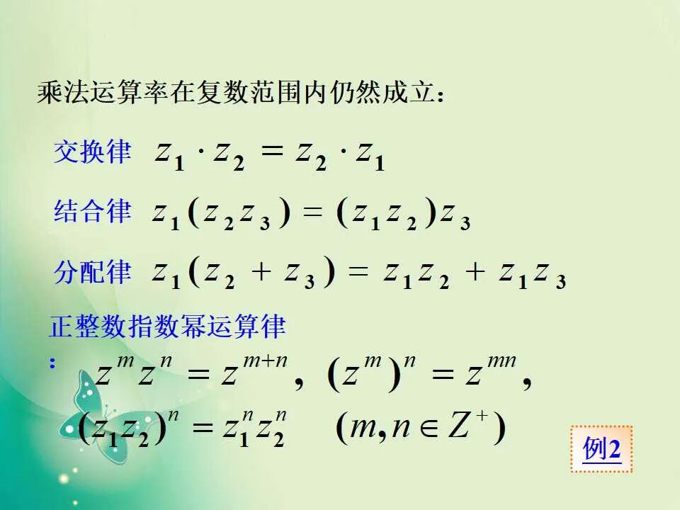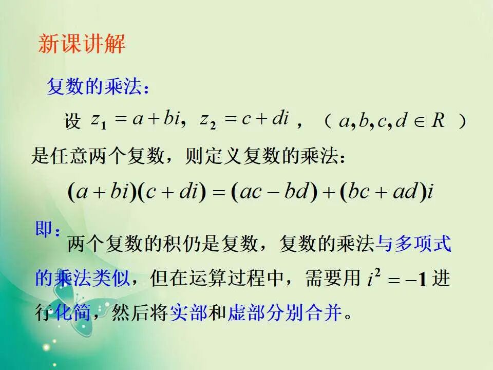 2.理解复数乘法的交换律、结合律和乘法对加法的分配律;