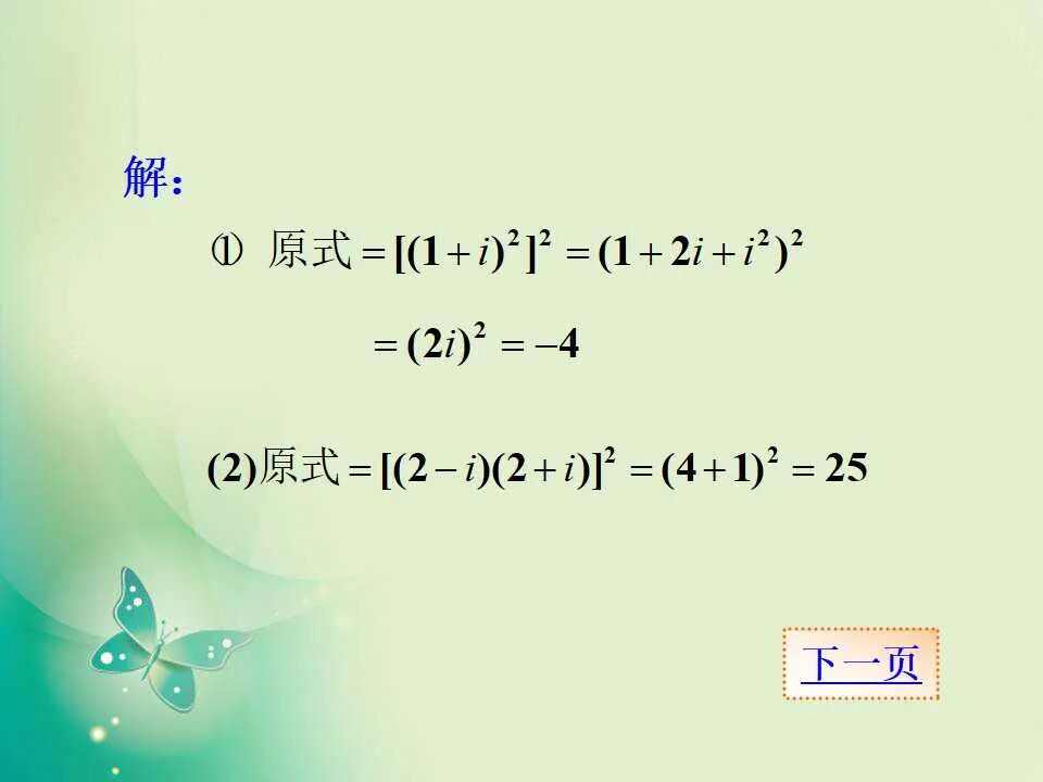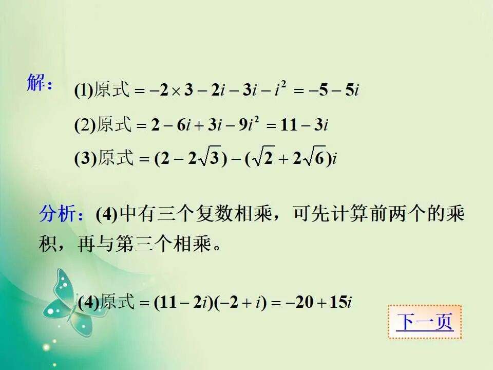 [提示]复数的乘法与多项式乘法是类似的,有一点不同即必须在所得结果中把i2换成-1,再把实部、虚部分别合并.