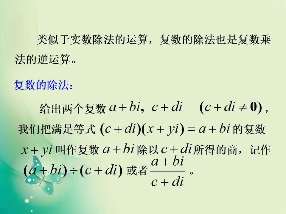 前面学习了复数的加法、减法运算,根据多项式的乘法、除法运算法则猜测复数的乘法、除法满足何种运算法则?