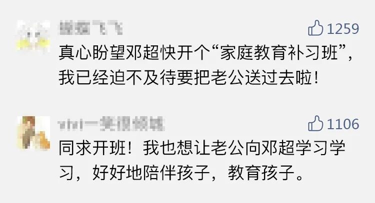 甚至有网友喊话,盼望邓超能开个“家庭教育补习班”,想把老公送过去学习学习。