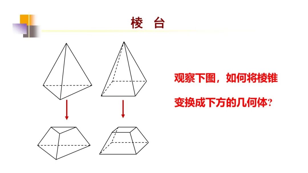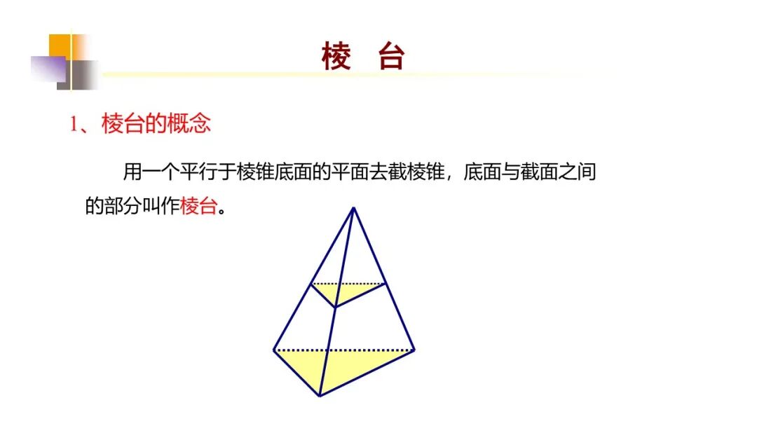 由三棱锥、四棱锥、五棱锥……截得的棱台分别叫做三棱台、四棱台、五棱台……