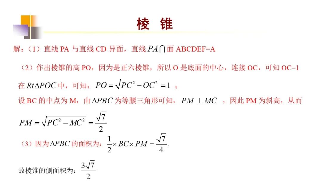 [思路探究] 根据多面体的侧面积公式,可以先求出相应多面体的底面边长和各侧面的斜高,进而由公式求解.