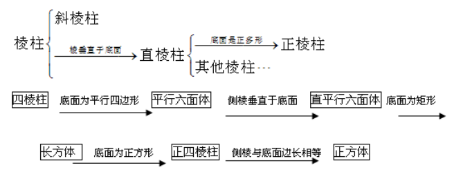 注:相关棱柱几何体系列(棱柱、斜棱柱、直棱柱、正棱柱)的关系: