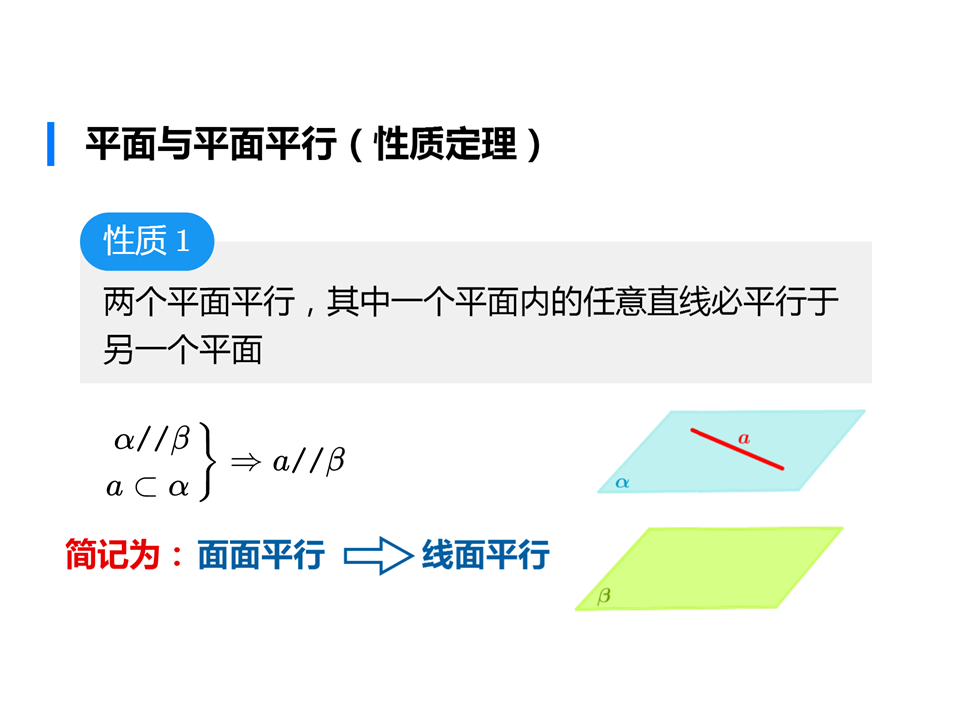 经历面面平行判定方法的探究与证明过程,提升逻辑推理能力与空间观念。