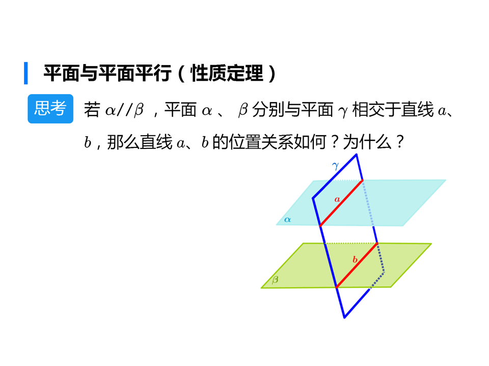 由线面平行过渡到面面平行,引出课题《平面与平面平行的判定》。