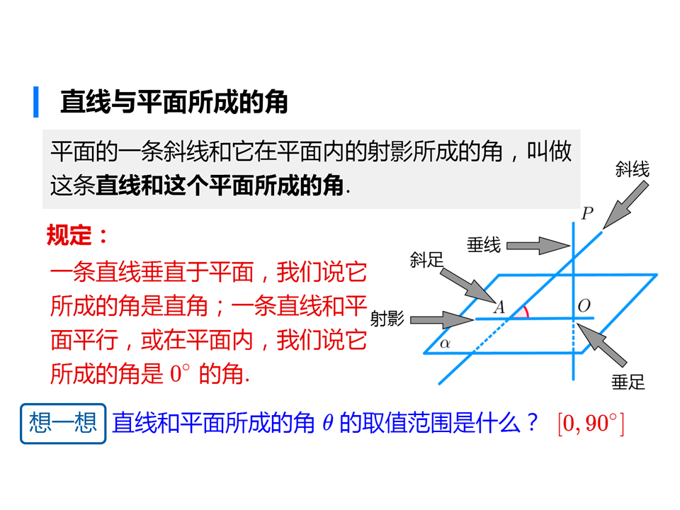 定义:若一条直线与一个平面垂直,则这条直线与这个平面的交点叫做垂足。