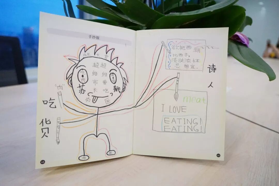 一路上,两个孩子涂涂画画,写打油诗、画行程、写日记。很快,一个不到100页的本子涂写完了。