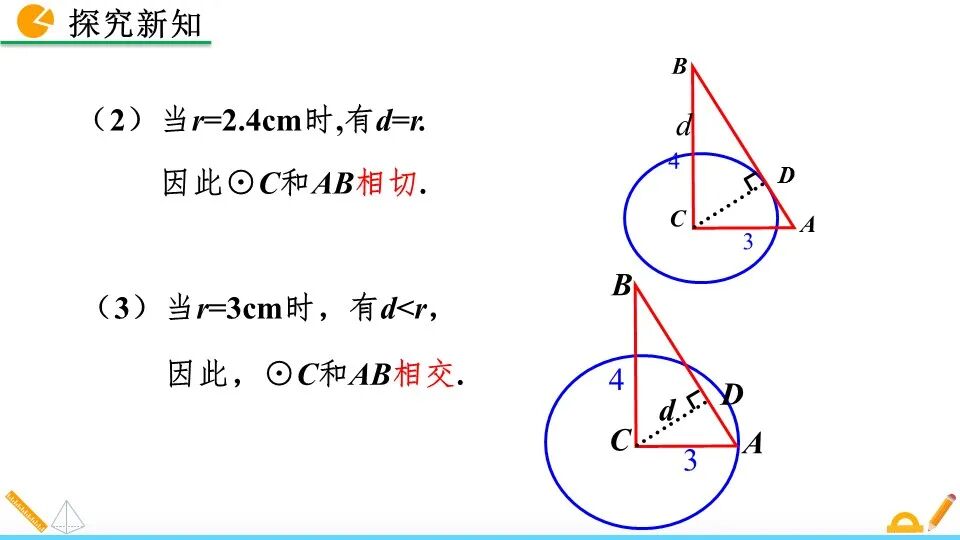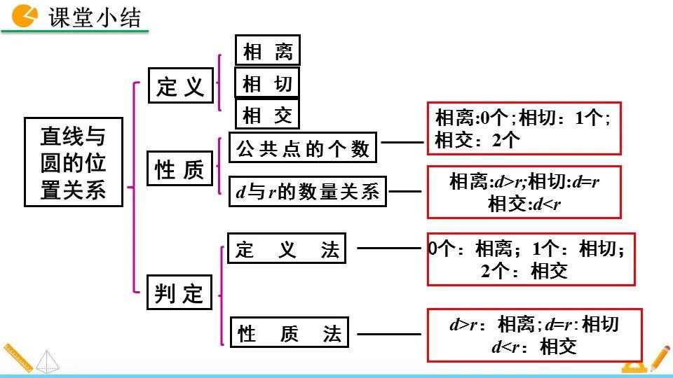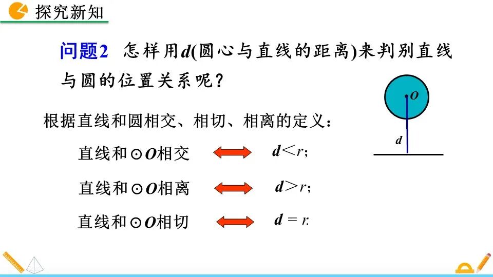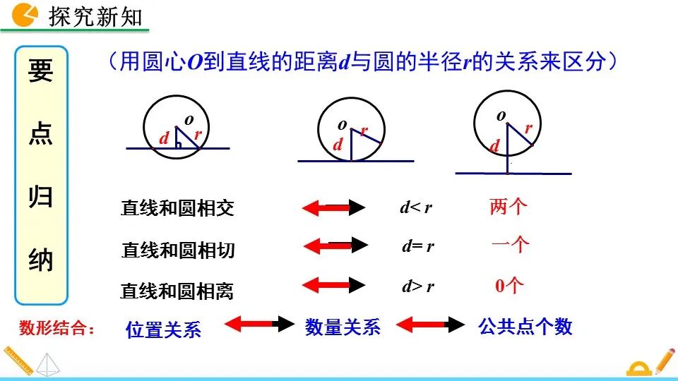 d>r直线与圆相离;d=r直线与圆相切;0≤d