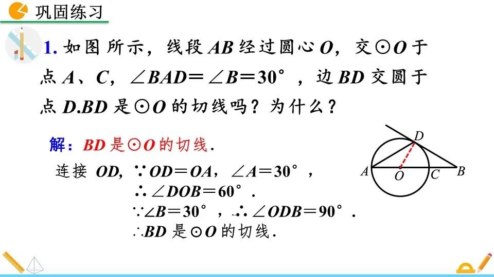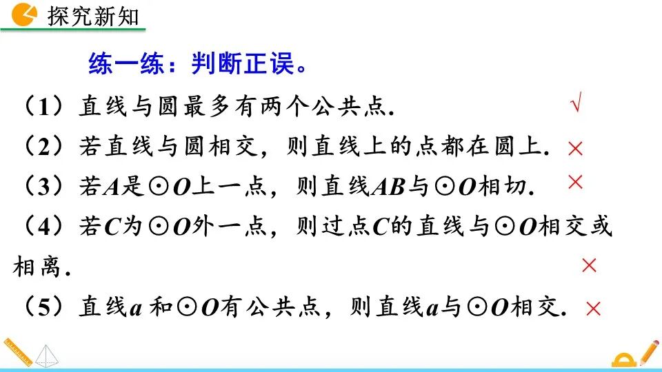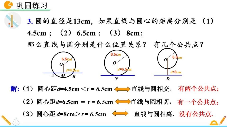 1.已知⊙O的半径为10cm,如果一条直线和圆心O的距离为10cm,那么这条直
