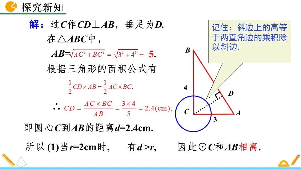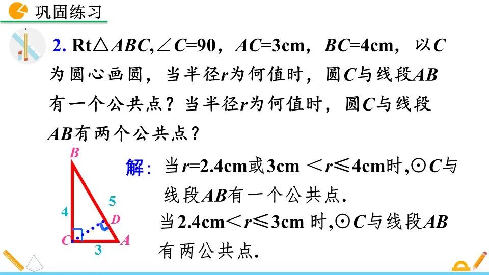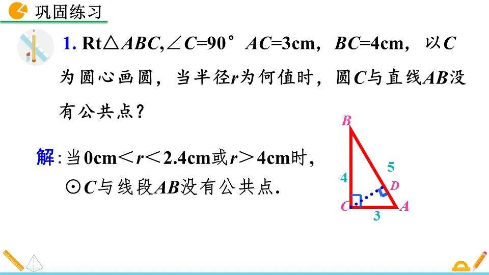 (l)几何法:令圆心到直线的距离为d,圆的半径为r.