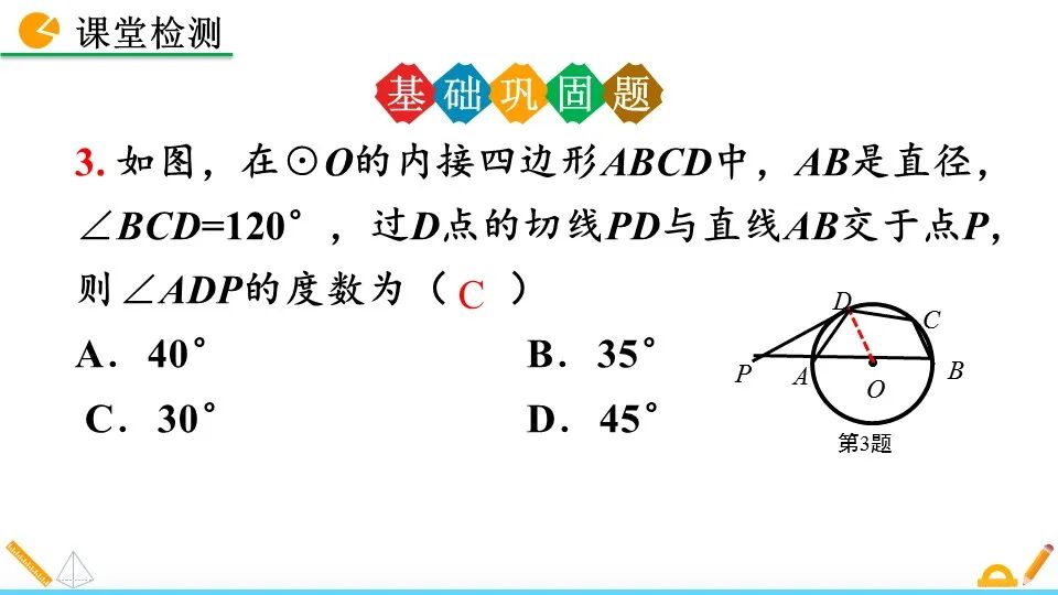 3.如图,PA切⊙O于A,PB切⊙O于B,OP交⊙O于C,