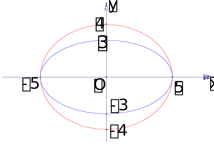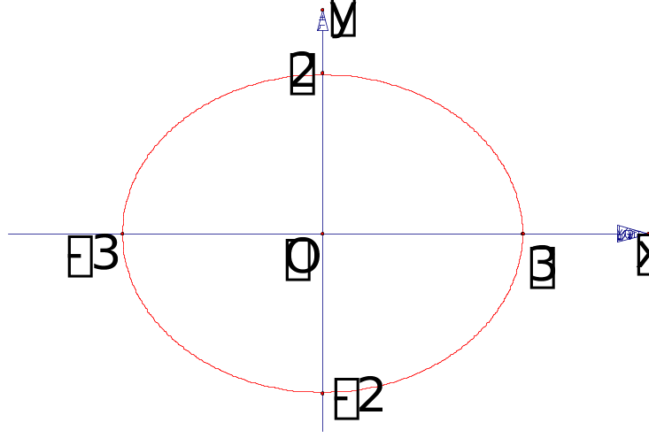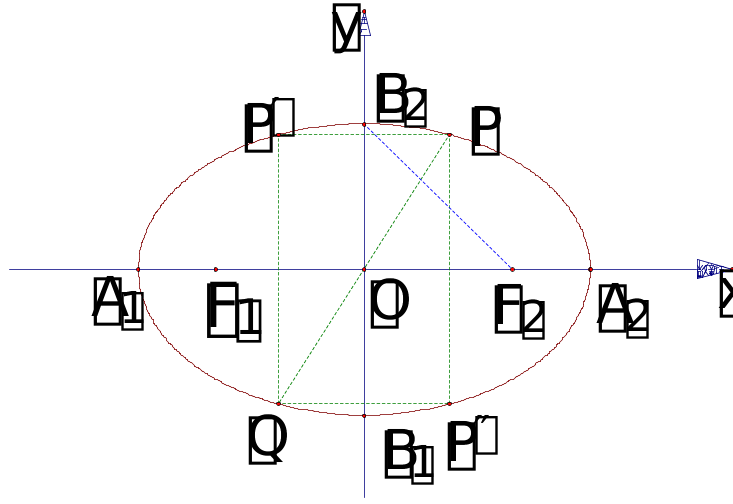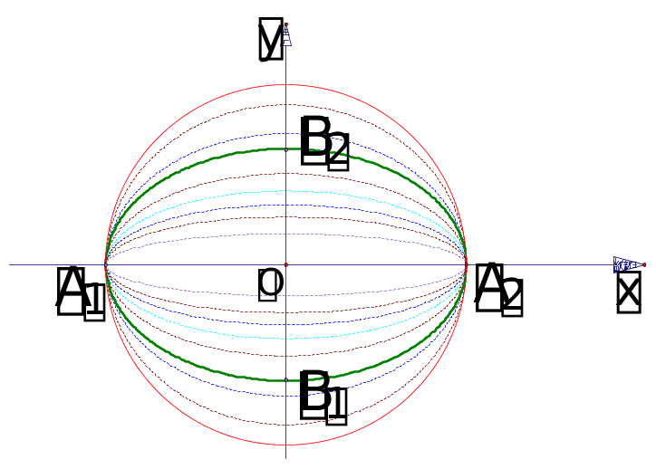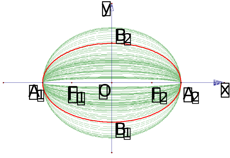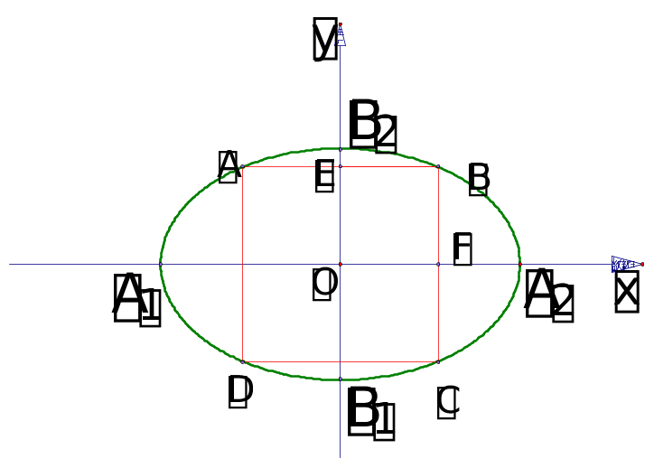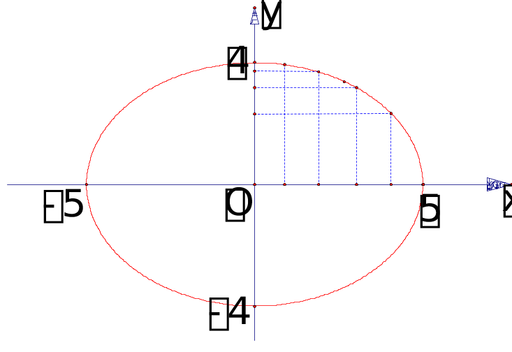 至此我们从椭圆的方程中直接可以看出它的范围, 对称性, 顶点.因而只需少量描点就可以较正确的作图了.