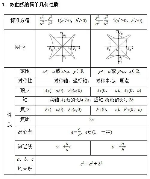 1.了解双曲线的简单几何性质,如范围、对称性、顶点、渐近线和离心率等。