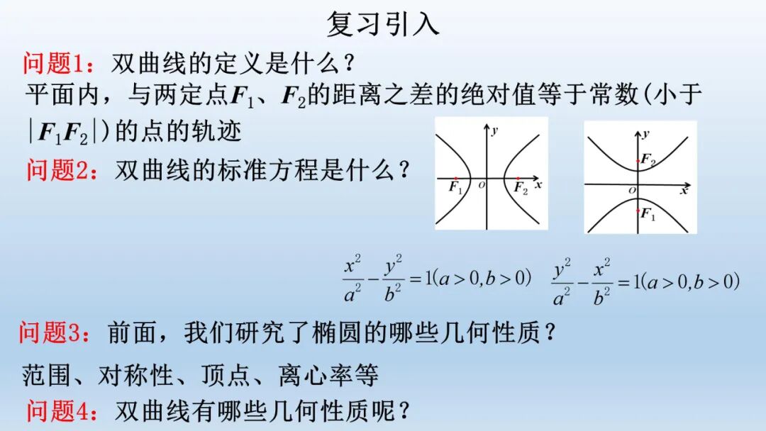 以 研究双曲线的几何性质。 问题1.回忆研究椭圆