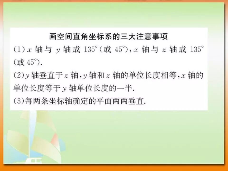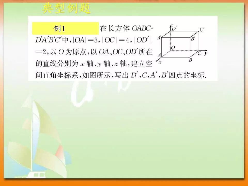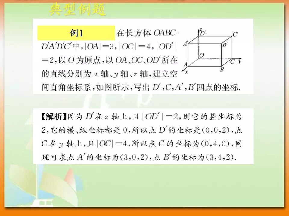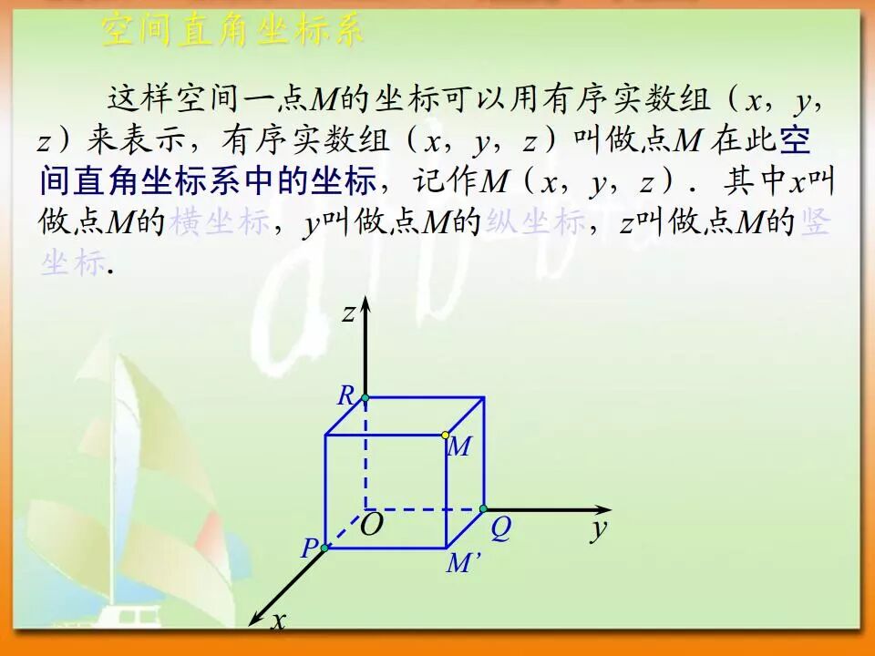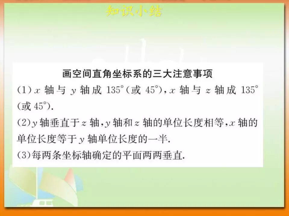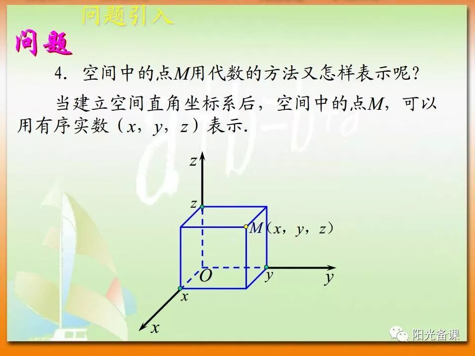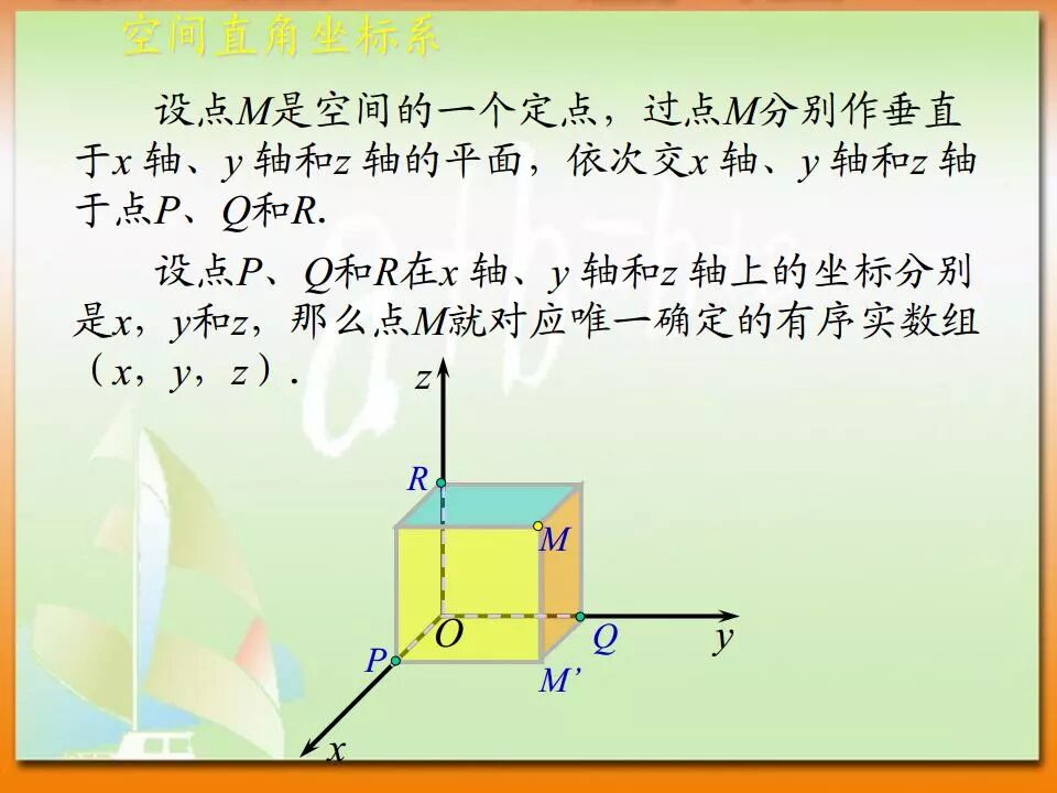 2.通过空间直角坐标系的建立,使学生初步意识到:将空间问题转化为平面问题是解决空间问题的基本思想方法。