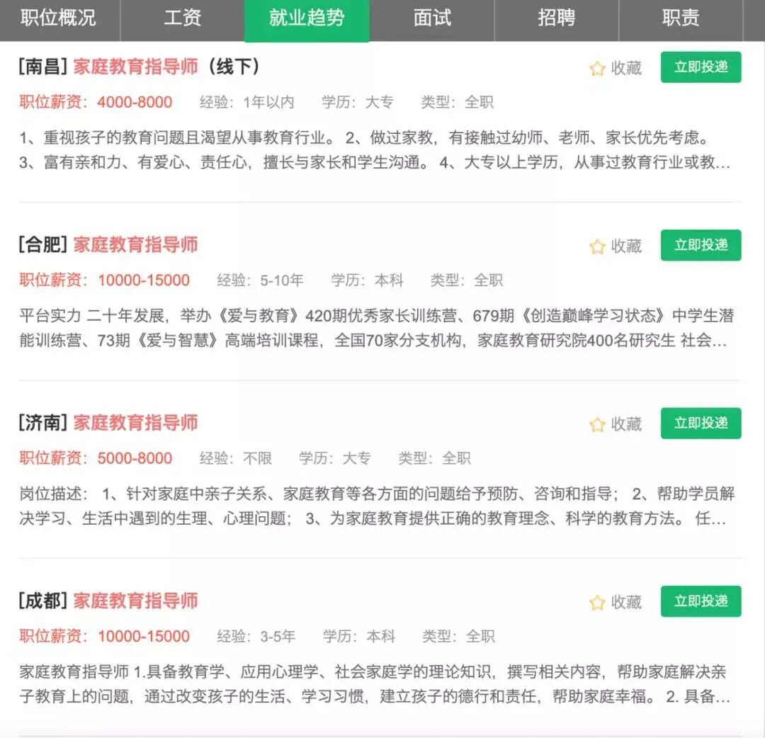 据有关机构预测,我国今后几年内至少需要460万名“家庭教育指导师”,这一职业将成为就业稳定、收入丰厚的新职业。通俗来讲,家庭教育指导师是家庭的“导师”和“医生”,通过对家长和孩子的沟通测评找到家庭教育中的问题,跟踪指导并帮助解决家庭教育中的困惑,实现家庭幸福。![]()