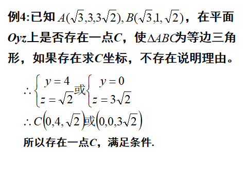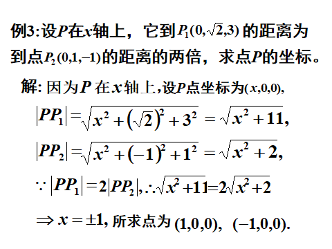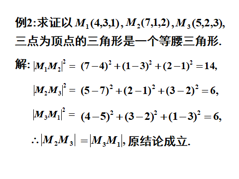 解得z = –3. 所求点M的坐标是(0,0,–3). 3.证明:根据空间两点间距离公式,得