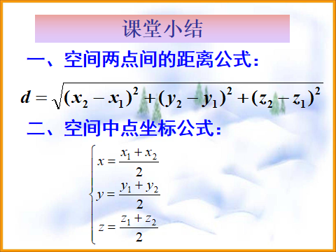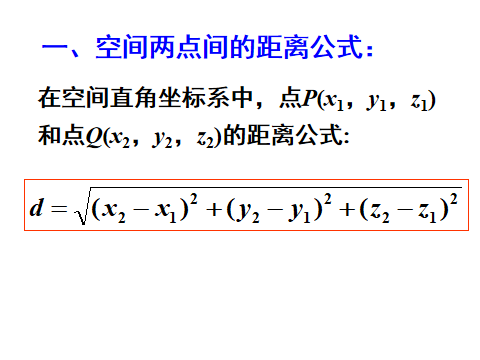 1.知识与技能: 使学生掌握空间两点间的距离公式