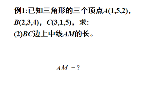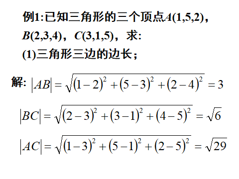 例2已知点A(1,-2,11)B(4,2,3)C(6,-1,4)判断该三角形的形状。(直角三角形)