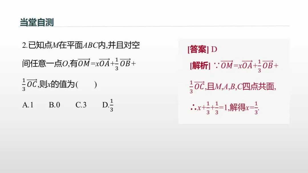 4.已知点M在平面ABC内,并且对空间任意一点O,有,则x的值为 .