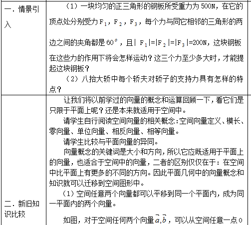 【教学重点】:空间向量的概念和加减运算