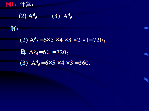 解析:(1看作余下6个元素的全排列,66720A=种.(2根据分布乘法计数原理,第一